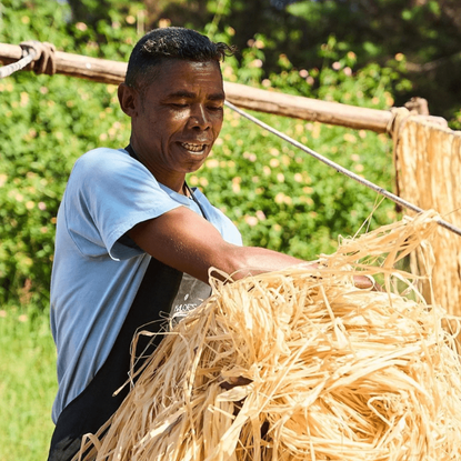 Our artisans in Madagascar have a deep-rooted tradition of working with raffia. They've handed down their know-how in choosing the best raffia leaves, preparing the fibers, dyeing, and weaving techniques from one generation to the next.